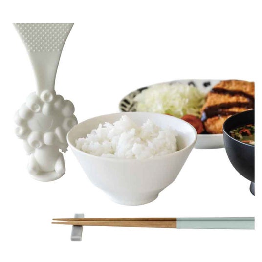 大阪・関西万博公式キャラクター「ミャクミャク」の「マスコット付きしゃもじ」が新登場!ご飯を食べるのが楽しくなります。ご飯をよそったら、しゃもじを座らせておくことができます。