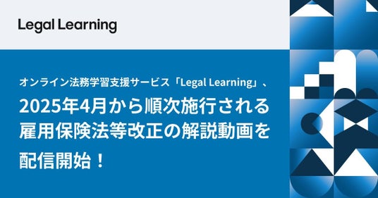 株式会社LegalOn Technologies(本社:東京都渋谷区 代表取締役 執行役員・CEO:角田 望)が提供する、オンライン法務学習支援サービス「Legal Learning」(https://legal-learning.jp/)で、2025年4月以降に順次施行される雇用保険等改正について、弁護士法人高井・岡芹法律事務所の平良 亜大弁護士が解説する動画を配信開始しました。本動画では、雇用保険等改正の背景と内容に加え、各企業が対応すべき事項や施行スケジュールなどを解説しています。