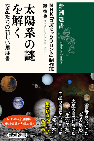 NHKが2011年のBSプレミアム開始以来、総力をかけて取材を続ける人気科学番組「コズミックフロント」が、書籍化されました。総制作数300本を超える番組の中から「太陽系」に関する回を厳選、地球外生命の研究や、次々に明らかになる惑星の内部の話など、放送時に反響を呼んだテーマに、最新の知見を加えて一冊にまとめています。『太陽系の謎を解く――惑星たちの新しい履歴書』は、新潮選書から6月23日に発売されます。