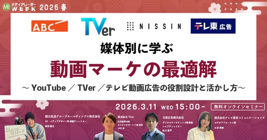 株式会社アイズ(所在地:東京都渋谷区、代表取締役社長:福島範幸、東証グロース:5242)が運営するNo.1*の広告業界のプラットフォーム「メディアレーダー」が主催するマーケティングセミナーイベント「第21回メディアレーダーWEEK 2026 春」にて、動画マーケティングの専門家たちが3/11(水)に登壇します。視聴申し込みは無料です。