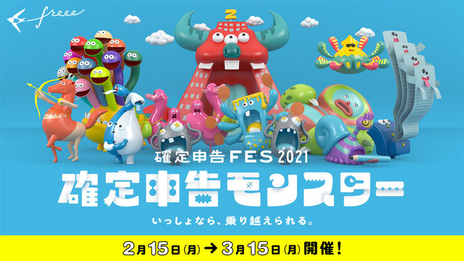 確定申告を楽しくわかりやすく学べる、完全オンラインの参加型コンテンツ 『 確定申告モンスター by 確定申告FES2021 』を2月15日~3月15日の期間で開催します。確定申告の不安や疑問を解消し、個人事業主が交流できる場も提供することで「おうちでサクッと確定申告」を簡単に楽しく行えるスペシャルな体験をお届けします。