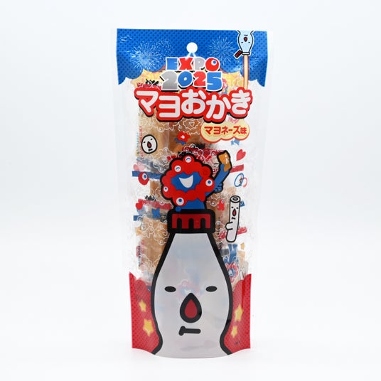 大阪・関西万博公式キャラクター「ミャクミャク」が大阪土産として大人気の「マヨおかき」とコラボレーション!