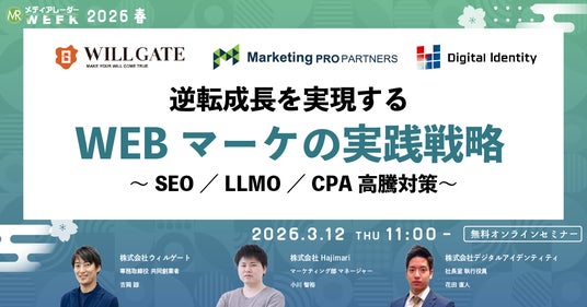株式会社アイズ(所在地:東京都渋谷区、代表取締役社長:福島範幸、東証グロース:5242)が運営するNo.1*の広告業界のプラットフォーム「メディアレーダー」が主催するマーケティングセミナーイベント「第21回メディアレーダーWEEK 2026 春」にて、WEBマーケティングの専門家たちが3/12(木)に登壇します。視聴申し込みは無料です。