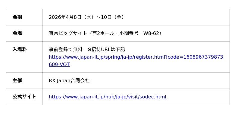 「Japan IT Week ソフトウェア受託開発・開発支援 展【春】」出展概要