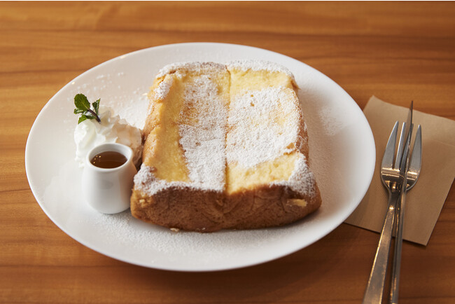 軽井沢で宣教師直伝の製法を100年以上守り続けている老舗パン屋のイギリスパンを使用したフレンチトースト。厳選卵を使用した特製アバレイユに一晩染み込ませ、注文を受けてから低温でじっくり焼き上げるため、ふわとろの食感をご堪能いただけます。