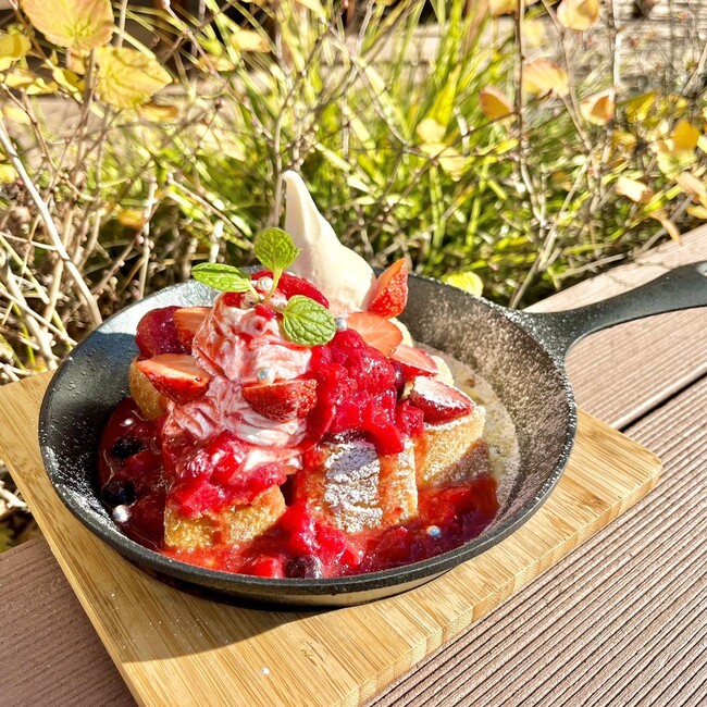 さらに、1月11日~2月13日の期間限定で、国産牛ハラミとマッシュポテトのエッグベネディクトと、苺狂い鉄板フレンチトーストの提供も行っております。