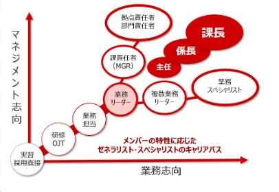また業務内容だけでなく、本人の特性に応じて、ゼネラリスト・スペシャリストといったキャリアパスを設けることで、意欲のある職員のモチベーションアップにもつながっています。