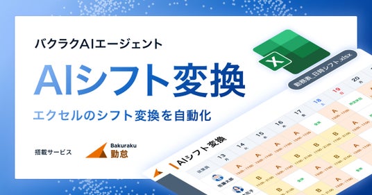 株式会社LayerX(本社:東京都中央区、代表取締役CEO:福島良典、以下「 LayerX」)は、勤怠管理サービス「バクラク勤怠」において、シフト表をアップロードするだけで、AIがバクラク勤怠の勤務予定のフォーマットに自動変換する「AIシフト変換」機能の提供を開始しました。