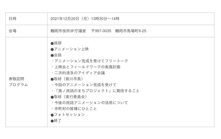 日時:2021年12月20日(月)13時30分~/場所:鶴岡市役所3F庁議室