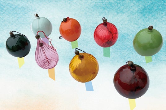 で使用された風鈴で紀州漆器協同組合青年部の皆様が製作しました。昨年に引き続き、紀州漆器協同組合様にご協力いただき設置しております。 かいなん夢風鈴 をうちわで仰いで涼しげな音色をお楽しみください。