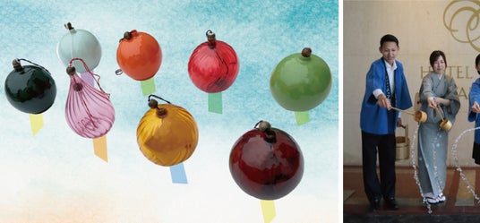 「涼」を感じるおもてなしとして、館内へ紀州漆器の技法で色付けされた「かいなん夢風鈴」を昨年に引き続き設置いたします。色とりどりの風鈴が、涼しげな音色でホテルを訪れるお客様を楽しませてくれます。また、ホテル館内で日々たくさん消費している「お米」に着目し、「涼」を味わうサスティナブルな「お米」メニューにアレンジ。朝食レストランでは和歌山の郷土料理である茶粥を「冷やし茶粥」として提供しております。