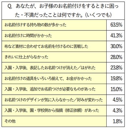 お名前付けの不満、第1位は「お名前付けする持ち物の数が多かった」