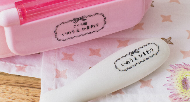 テープは業界最多の豊富な種類があり、毎日洗うお弁当箱やコップには「強粘着ラベル」、ハンカチやお弁当袋などの布アイテムには「アイロンラベル」、付け外しが簡単なお名前タグが作れる「りぼん」など、アイテムに合わせてテープカートリッジを選ぶことができます。