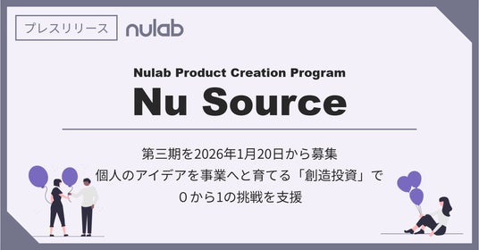 株式会社ヌーラボ(本社:福岡県福岡市、以下 ヌーラボ)は、新規事業創出プログラム「Nu Source(ヌーソース)」の第三期 事業アイデア募集を2026年1月20日(火)から開始します。2025年2月に始動した第一期、同年9月から募集した二期では、社内外から累計65件のエントリーがあり 、現在1件のプロジェクトがプロトタイプ開発フェーズに進み 、事業化に向けた具体的な動きが進んでいます。