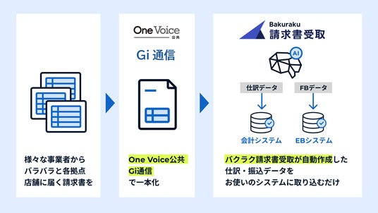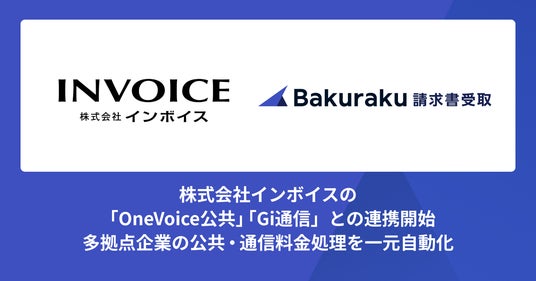 株式会社LayerX(本社:東京都中央区、代表取締役CEO:福島良典、以下「LayerX」)は、「バクラク請求書受取」において、株式会社インボイスが提供する「OneVoice公共」「Gi通信」との連携を開始しました。本連携により、店舗や拠点ごとにバラバラに届く公共料金・通信料金の請求書を「OneVoice公共」「Gi通信」が1本化し、その仕訳および振込データは「バクラク請求書受取」が自動作成します。これにより、多拠点展開をする企業の請求書処理にかかる工数を削減します。