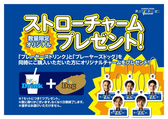 「プレーヤーズドッグ」、「プレーヤーズドリンク」をセットでお買い上げのお客さまには、ランダムでアクリルストローチャームをプレゼントします。