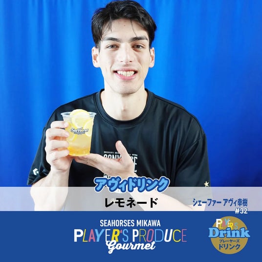 アヴィドリンク (レモネード)#32 シェーファーアヴィ幸樹選手こだわりのレモネードは甘みと爽やかな酸味のバランスがよく、クエン酸効果で疲労回復!(レモンはお好みで潰して飲んでね♪)