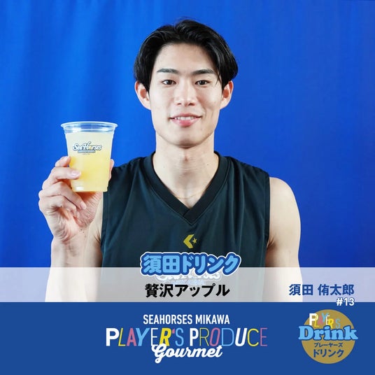 須田ドリンク (贅沢アップル)アップルジュースには目が無い須田選手が飲み比べの中から厳選!りんごを丸ごと搾った100%のアップルジュース。