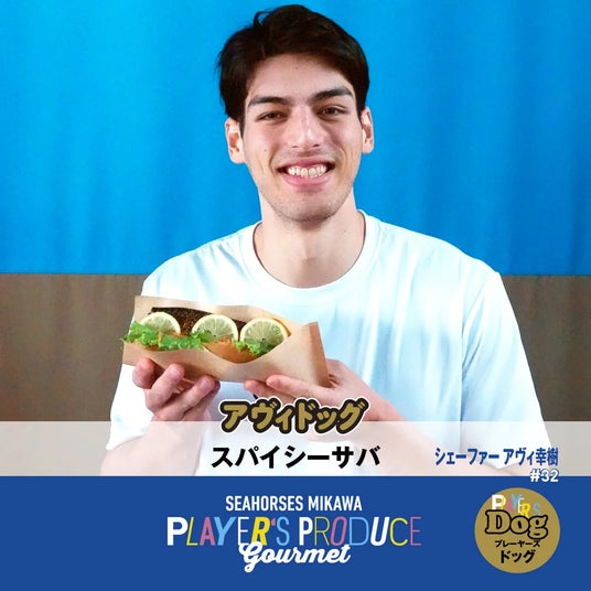 アヴィドッグ (スパイシーサバ)#32 シェーファーアヴィ幸樹選手が旅先で食べた「めちゃくちゃ美味しかったサバサンド」を再現!スパイシーでちょっと酸っぱいサバサンドをぜひ食べてみて♪(「骨抜きサバ」を使用しておりますが、骨が残っている場合がございます。)