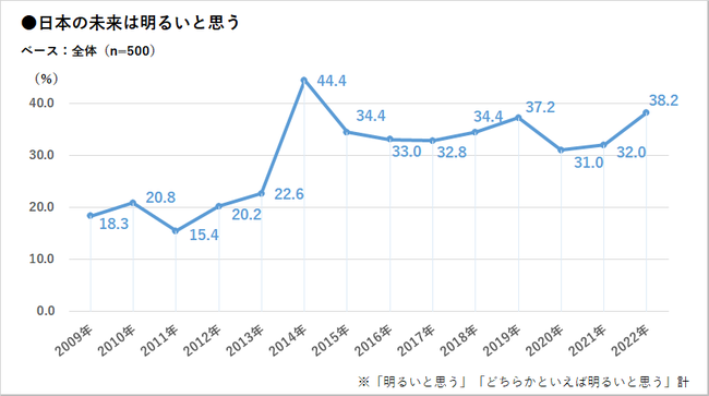 1. 「日本の未来は明るい」38.2%、3年前の水準に回復。理由は「コロナ終息の兆し」「技術の発展」など