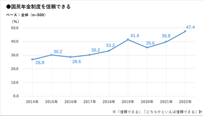 「国民年金制度を信頼できる」47.4%で、最高値を記録