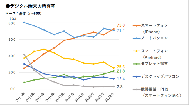 デジタル端末、所有率1位は「iPhone」で73.0%、2位は「ノートパソコン」71.4%