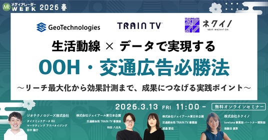 株式会社アイズ(所在地:東京都渋谷区、代表取締役社長:福島範幸、東証グロース:5242)が運営するNo.1*の広告業界のプラットフォーム「メディアレーダー」が主催するマーケティングセミナーイベント「第21回メディアレーダーWEEK 2026 春」にて、OOH・交通広告マーケティングの専門家たちが3/13(金)に登壇します。視聴申し込みは無料です。