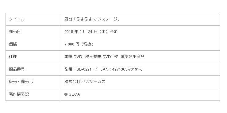 舞台「ぷよぷよ オンステージ」特設サイト→ http://puyo-stage.sega.jp/