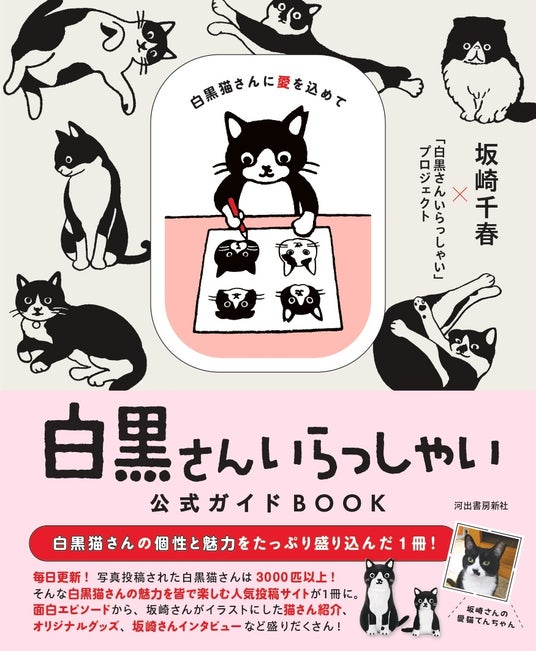 2017年3月公開以来、毎日更新され、多くの猫ファンを魅了し続ける人気サイト「白黒さんいらっしゃい」の魅力をまとめた初の書籍『白黒さんいらっしゃい公式ガイドBOOK』が、株式会社河出書房新社(東京都渋谷区/代表取締役小野寺優)より刊行されました。
