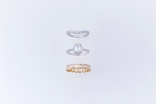 ・Wave Half Eternity Ring : 245,000円・Emerald Cut Halo Engagement Ring (センター:1.0ct):590,000円・Emerald Cut Bezel Eternity Ring : 368,000円~