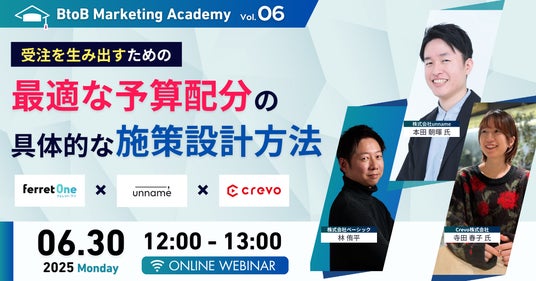BtoBマーケティングのお困りごとをまるっと解決するサービス『ferret One(フェレットワン)』を運営する株式会社ベーシック(本社:東京都千代田区、代表取締役:秋山勝)は、6/30(月)12時よりBtoB企業でのマーケティング責任者や担当者に向けたセミナー「受注を生み出すための最適な予算配分と具体的な施策設計方法」を開催いたします。