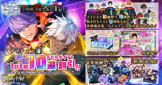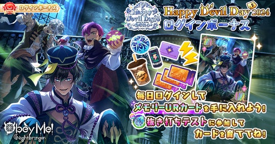 2023年4月にリリースし、全世界で熱烈なファンを獲得しているエヌ・ティ・ティ・ソルマーレ株式会社のモバイルゲーム『Obey Me! Nightbringer』が、今年の10月でリリース1.5周年を迎えます。アニバーサリーを記念して、各種キャンペーンを実施いたします。