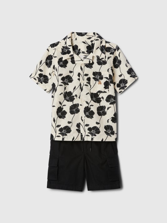 ファミリーリンクアイテムでは、ナイロン イージーショートパンツに加えて、ブラック&ホワイトのフラワープリントアイテムも必見です。メンズはリゾートシャツ、ウィメンズはミディドレス、ガールズ&トドラーガールズはタンクトップ、プルオン ショートパンツ、トドラーボーイズはコットンリネンシャツ×ショーツのセットアップなど、 バリエーション豊かにラインナップします。