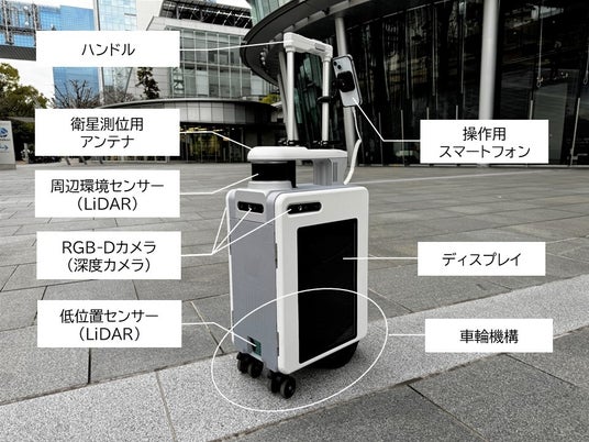 日本科学未来館(館長:浅川智恵子、以下:未来館)と、アルプスアルパイン株式会社(代表取締役社長CEO:泉英男)、オムロン株式会社(代表取締役社長 CEO:辻永順太)、清水建設株式会社(代表取締役社長:井上和幸)、日本アイ・ビー・エム株式会社(代表取締役社長:山口明夫)の4社が正会員として活動する一般社団法人次世代移動支援技術開発コンソーシアム(以下、コンソーシアム)は、共同で開発を進める視覚障害者向けナビゲーションロボット「AIスーツケース」について、デザインを一新し、新たな車輪機構やセンサーなどの新機能を搭載したモデルを開発しました。今後はナビゲーションの精度をさらに高めるとともに、AIによる音声対話などの新たな機能の開発を進め、大阪・関西万博で本格的な実証実験を行う予定です。