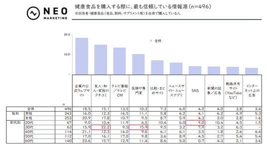30代は「友人・知人・家族のクチコミ」(22.2%)と「医師や専門家」(15.9%)を両輪に、生活者のリアルとプロの見解をバランス良く活用。