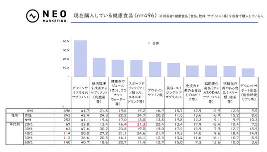 全体で購入率トップだったのが「ビタミンやミネラルのサプリメント」(41.7%)。