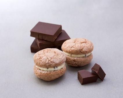 チョコレートとチェダーチーズを加えて、サクッと焼き上げたブッセ生地に、チョコチップ入りのバターチーズクリームをサンドしました。チョコレートとチーズの相性が抜群の人気商品は期間限定でのご用意です。