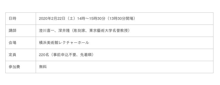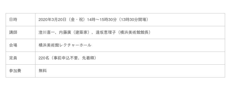 澄川喜一がセンター長を務める島根県芸術文化センター「グラントワ」や、作品《金波・銀波》が設置されたみなとみらい線馬車道駅を手がけた建築家・内藤廣氏をお招きし、建築と公共空間における美術作品について語ります。