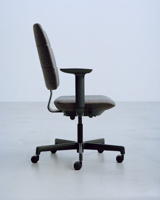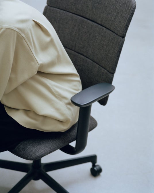 3)家具としての静けさを纏うフォルム従来のオフィスチェアに多いエルゴノミックなフォルムから一線を画し、シンプルなスクエアのシルエットの中に、エルゴノミクスに基づいた3次元のカーブを内包。“存在を主張せず、使う人の姿を引き立てる”――ノイズのない形状と、身体をやわらかに支える高い快適性を両立したデザインです。