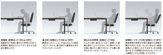 くるぶしを支点に背と座が連動して傾く「アンクルムーブ・シンクロロッキング」