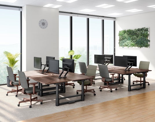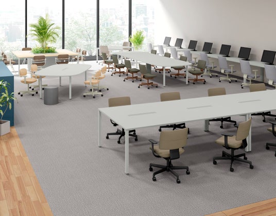 オフィスでは、木質什器やファブリック素材が混在する空間に自然に馴染み、執務エリア・ミーティングエリア・ラウンジなど、ゾーンを超えて一貫した美観を生み出します。