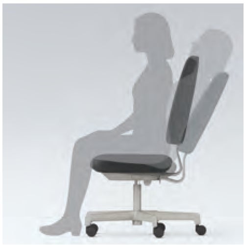 ロッキングには、イトーキで最も多くのタスクチェアに採用されている「アンクルムーブ・シンクロロッキング」を採用。くるぶしを支点に背と座が連動して傾き、後傾時に座全体が後方下にスライドすることで自然な姿勢変化をしなやかに支えます。これにより、体の動きに追従しながら安定した座り心地を保ちます(最大15度)。
