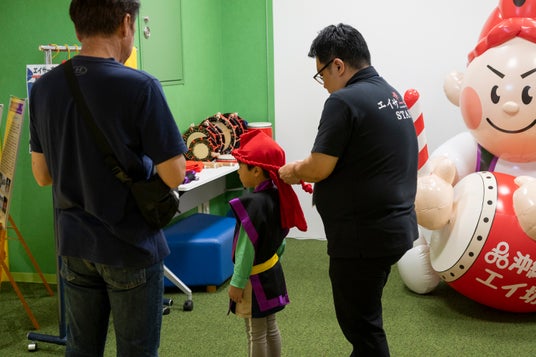 アリーナ場内には、沖縄市特産品をPRするブースや、伝統芸能エイサーの着付けを体験し記念撮影ができるブースが登場し、多くのお客様が楽しみながら沖縄市の文化を体感していただきました。