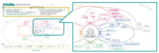 自分らしさを考えるユニットでは、マインドマップを活用したワークを導入。どんな生徒でも、頭の中に浮かんだことを直感的にアウトプットしながら自分自身について整理し、言語化を進めていけます。