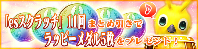 ・配信内容:期間中に「esスクラッチ11回」を購入された方に「ラッピーメダル5枚」をプレゼント!