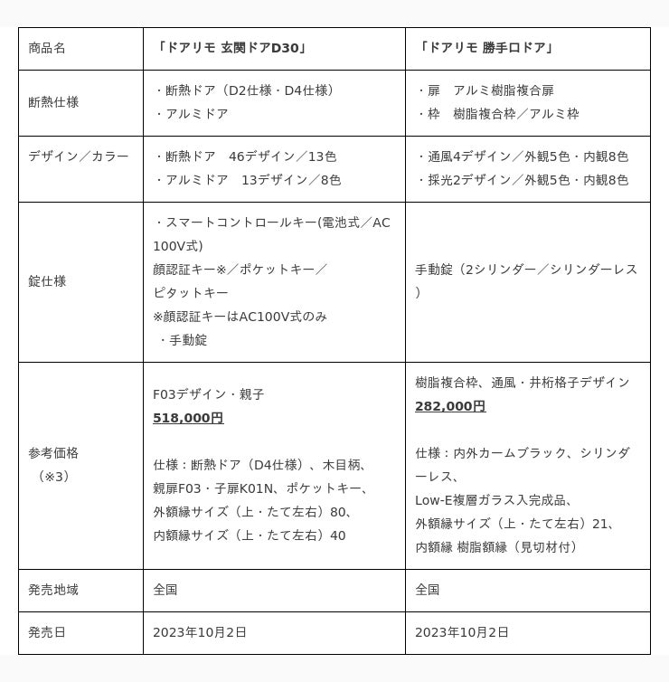 YKK AP株式会社(本社:東京都千代田区、社長:魚津 彰)は、外壁を壊すことなく、1日で最新のドアに取替が可能な「ドアリモ 玄関ドア D30」「ドアリモ 勝手口ドア」の2商品を、10月2日から同時リニューアルします。
