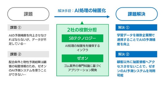 SBテクノロジー株式会社(本社:東京都新宿区、代表取締役社長 CEO:阿多 親市、以下SBT)は、日本ゼオン株式会社(本社:東京都千代田区、代表取締役社長:豊嶋 哲也 以下、ゼオン)と共に秘密計算技術を活用した企業間での秘匿データ連携によるマテリアルズ・インフォマティクス※1の実現を目指し、実証実験を開始します。
