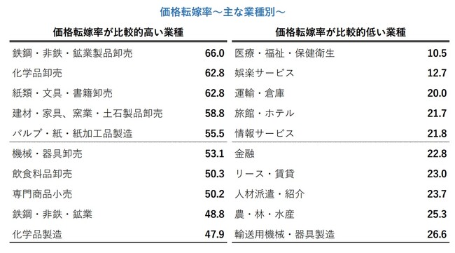卸売業を中心に価格転嫁が進むも、医療やサービス、運輸業などでは転嫁は低水準