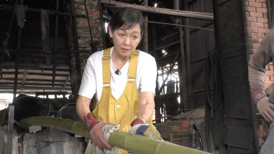 今回番組では、別府市内にある老舗竹加工メーカー「永井製竹」(明治41年創業)を訪問。真竹を使った食器や日用品の製造現場を見学し、竹加工における最重要工程「油抜き」について詳しく学ぶ。油抜きとは、竹が自らを守るためのコーティング油を除去する作業で、すべての竹加工の出発点となる伝統技術である。