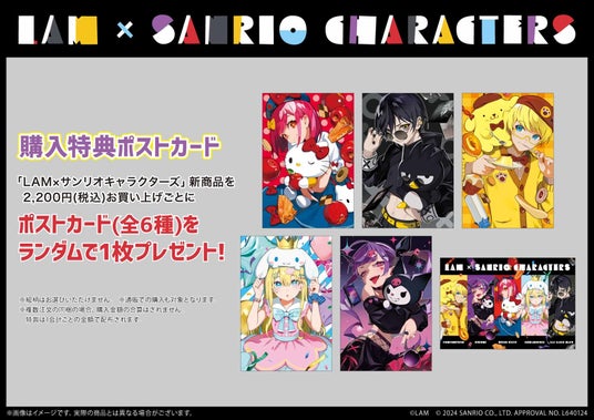 「LAM×サンリオキャラクターズ」新商品のみを1会計2,200円(税込)お買い上げごとに、購入特典としてポストカード(全6種)をランダムで1枚プレゼント。どのペアも魅力的で全部集めたくなります……!